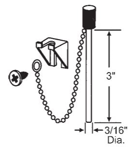 Night lock pin attached to chain for patio doors 3" long Includes screw