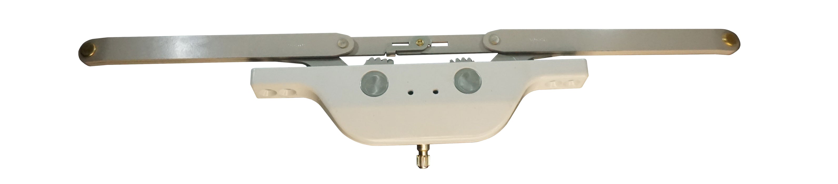 This White Truth Hardware Front Mounted Awning Operator features a durable 16" scissor arm design, ideal for smooth and reliable operation of awning-style windows. The front-mounted configuration provides a clean appearance when installed, while the robust scissor arm mechanism ensures even and secure window movement. Finished in white for a clean, modern look, this operator is built for longevity and performance—perfect for residential or light commercial applications. Compatible with select awning window systems using Truth Hardware components. Awning Operators Sold Individually. Operator Handles, Other Accessories and Hardware Not Included.