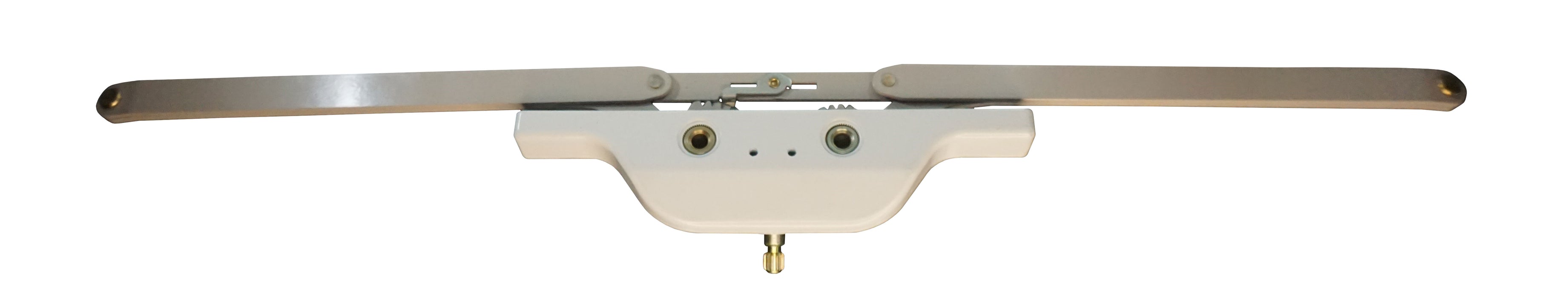 This White Truth Hardware Rear Mounted Awning Operator features a durable 21-1/2" scissor arm design, ideal for smooth and reliable operation of awning-style windows. The rear-mounted configuration provides a clean, concealed appearance when installed, while the robust scissor arm mechanism ensures even and secure window movement. Finished in white for a clean, modern look, this operator is built for longevity and performance—perfect for residential or light commercial applications. Compatible with select awning window systems using Truth Hardware components. Awning Operators Sold Individually. Operator Handles, Other Accessories and Hardware Not Included.